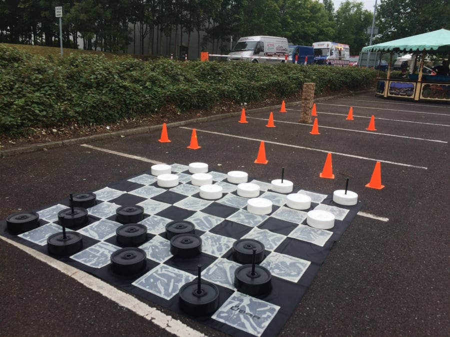 Giant Draughts Game is a large version of the traditional board game.
