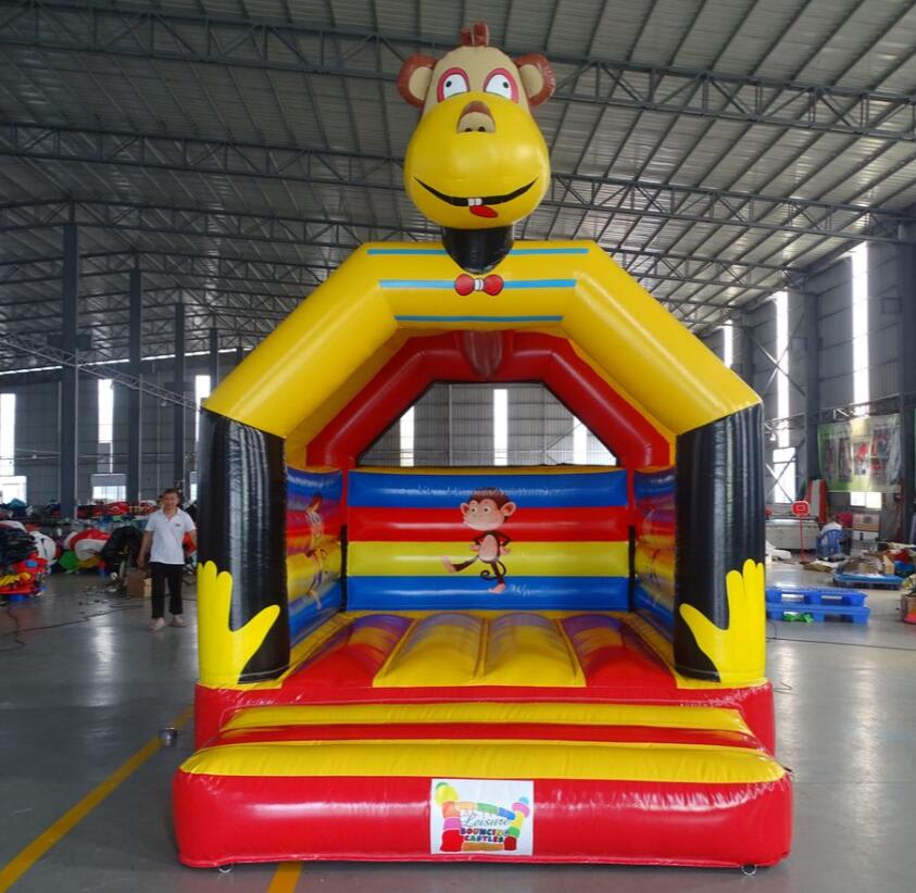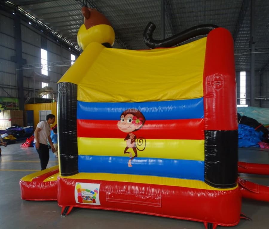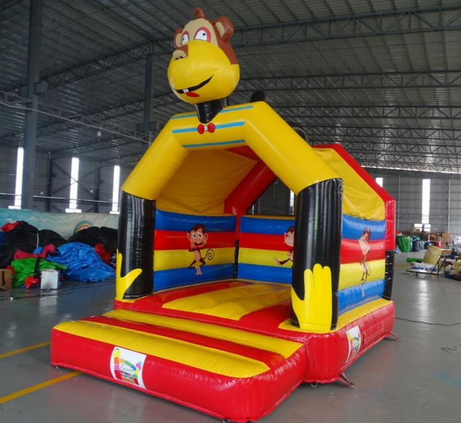 This Monkey themed Bouncy Castle is very popular at Children's birthday parties and Family Fun Days. This castle can hold up to 6 children at a time. The top panel features a Monkey's head. It is a lovely A-frame castle with a rain cover and high walls to ensure maximum safety at all times.
