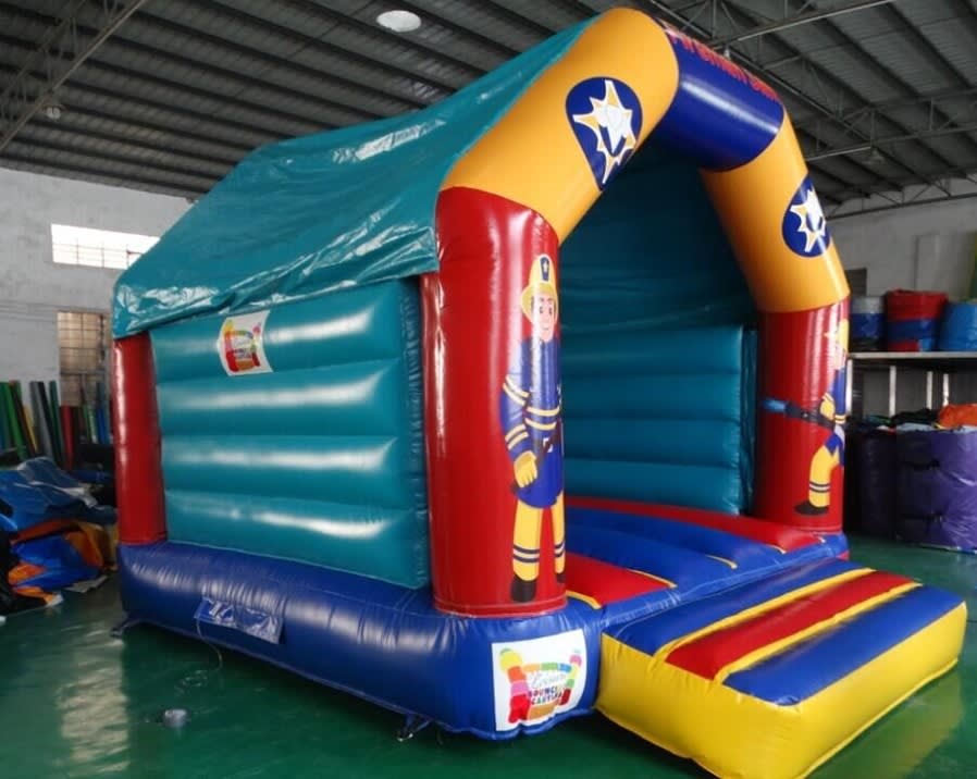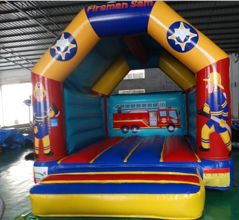 This Fireman Sam themed Bouncy Castle is very popular at Children's birthday parties - where space is tight as this is one of our smaller bouncing castles. This castle can hold up to 6 children at a time. The front panels feature images of Fireman Sam and internally the Fire Engine, which are digitally printed. It is a lovely A-frame castle with a rain cover and high walls to ensure maximum safety at all times.
