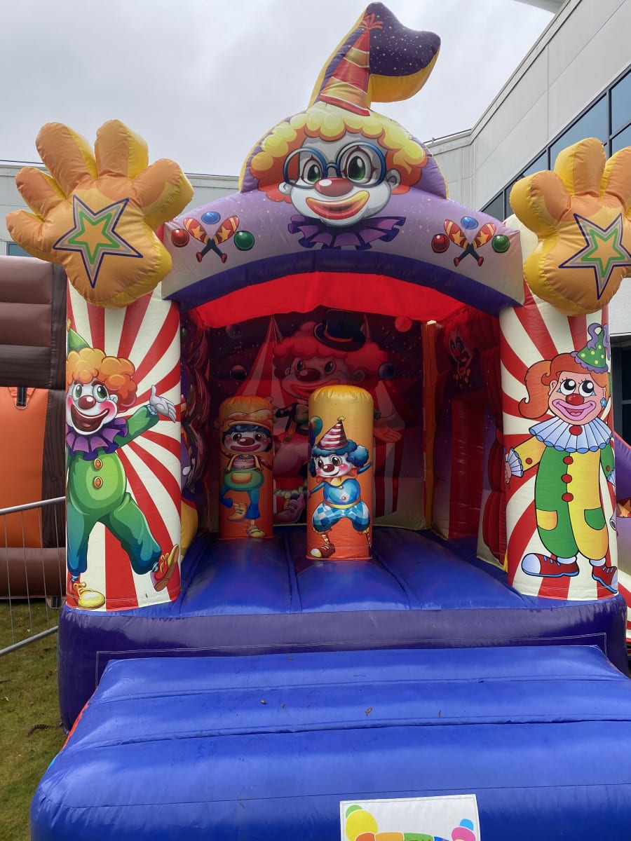 To book this Clown themed Slide Castle, just use the big buttons below - you can even check its availability against our live diary! Our quick online booking system collects all the information we require, and we will confirm your details with a email. Or, if you have any questions about this or any other Combi bouncy castle, or other services we offer, call us now on 0872795848!