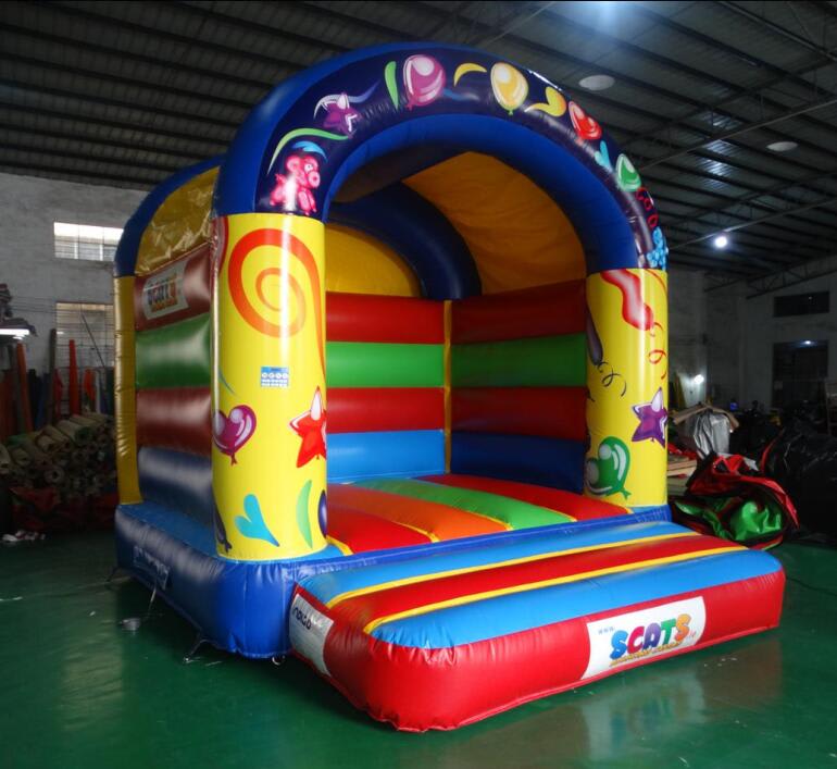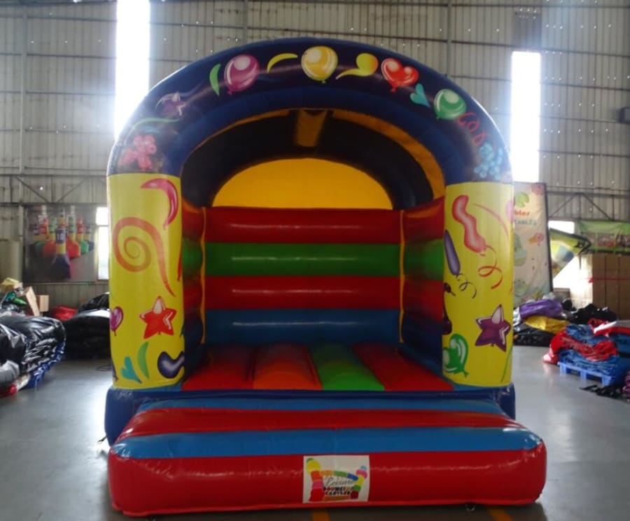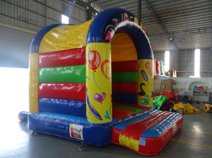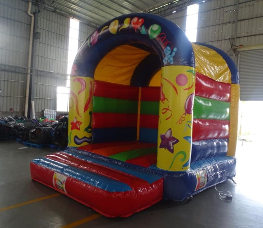 This Party Bouncer Castle is very popular at Children's birthday parties and Family Fun Days. This castle can hold up to 6 children at a time. The front panels feature images of balloons, which are digitally printed. It is a lovely A-frame castle with a rain cover and high walls to ensure maximum safety at all times.