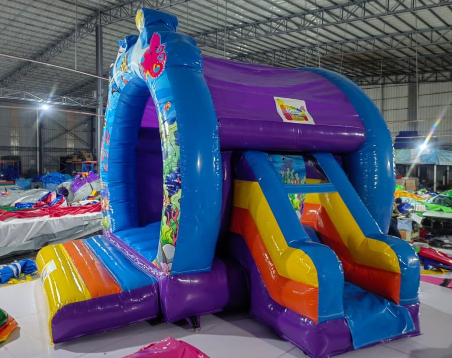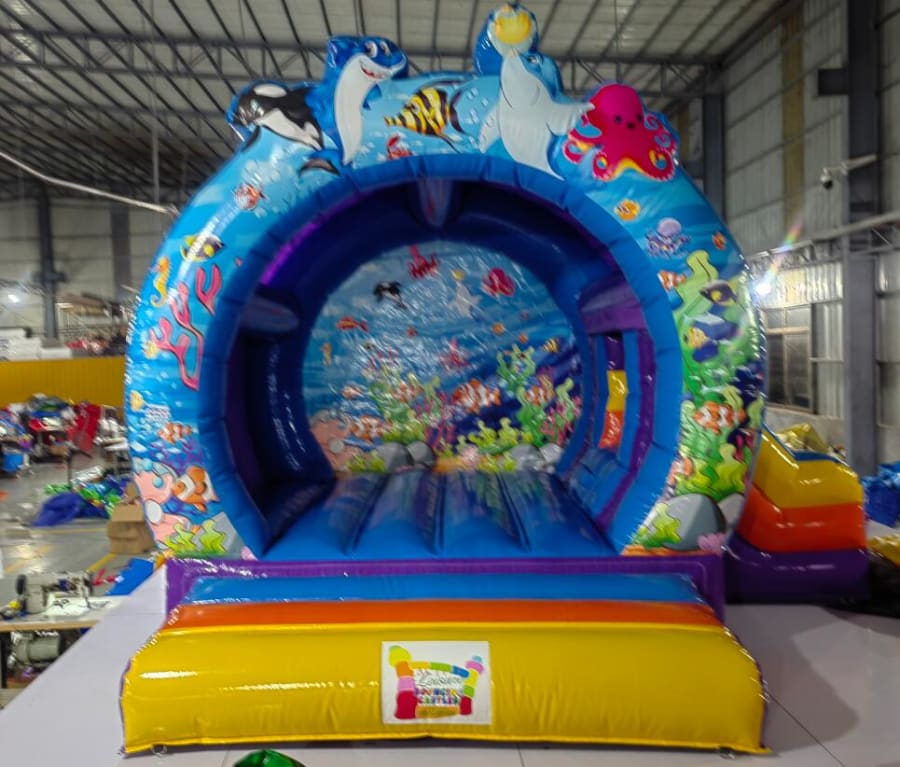 Dive into a world of fun and adventure with our Sea Themed Slide Castle! Perfectly crafted to ignite the imagination of young explorers, this captivating inflatable brings the magic of the sea right to your backyard. With a 13ft depth, 14ft width, and a generous 10ft x 10ft bouncing area, it's designed to fit snugly in smaller gardens, making it an ideal choice for families seeking compact, yet exciting entertainment options.