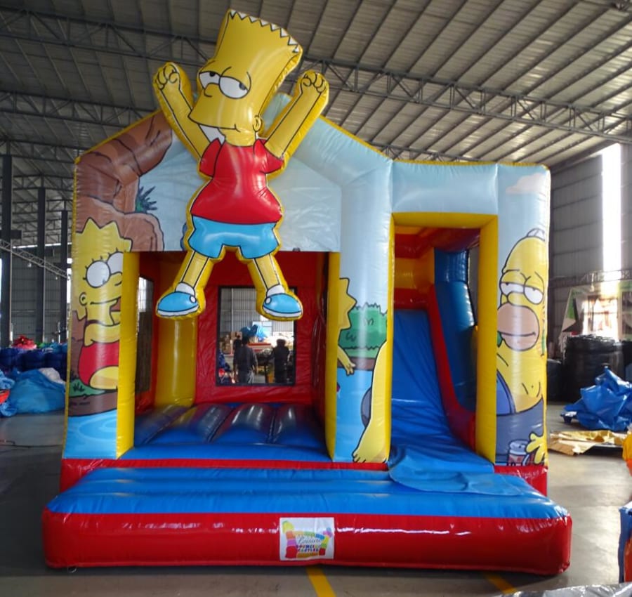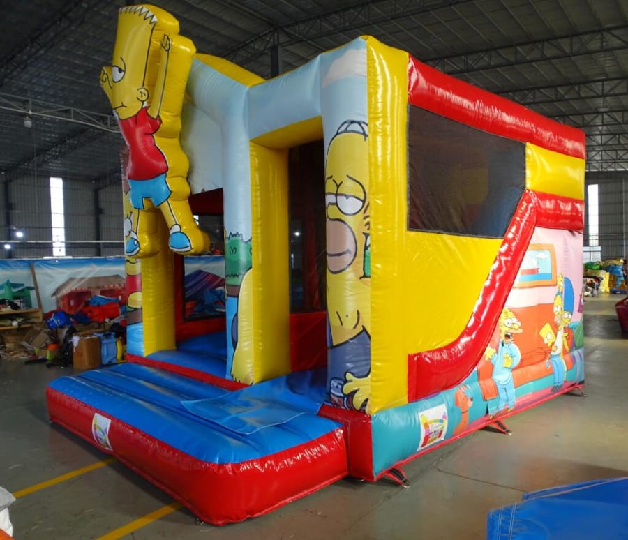 This Simpsons Bouncy Castle is very popular at Children's birthday parties, Family Fun Days and School events. With reinforced seams and a larger bouncing area it's suitable for up to 6 children at a time. The front panels feature images of Bart, Homer, Lisa and Marge. This castle also comes with a 8ft slide to the side of the castle and an enclosed bouncing space. This castle is very easily supervised from the outside as clear netting encloses the castle.