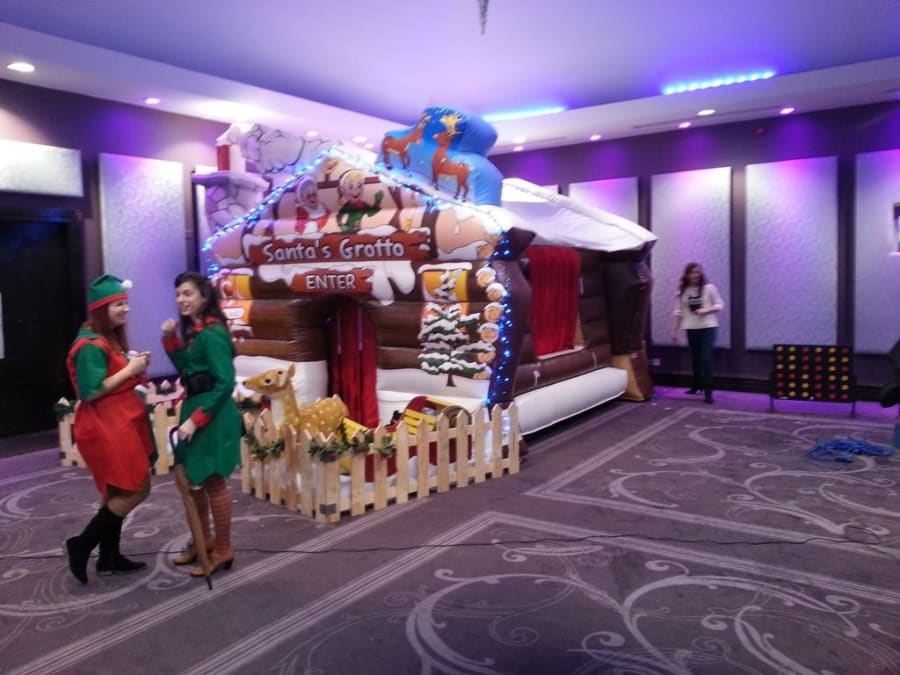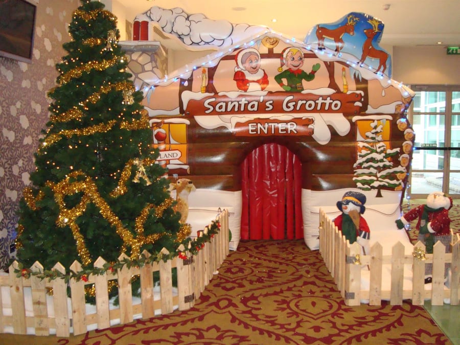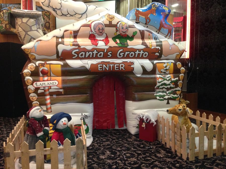 box, his miniature sleigh and Santa's couch. Perfect Pop Up Santa Grotto