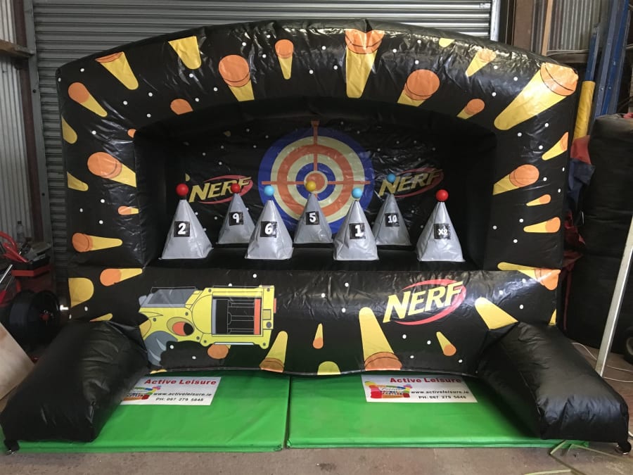 Please allow up to 15 minutes for set up, as well as going through a few safety features. It also takes about 15 minutes for collection. Please ensure that the Inflatable Nerf Shooter game will fit and our delivery team have clear access.