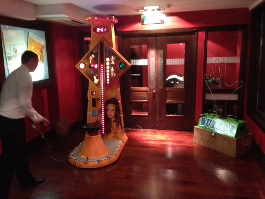 The Hammer is a extremely competitive game among the boys. Each person must use the rubber hammer to hit the target on the machine as hard as they can. When the target is hit a result is given, the high score is also recorded.