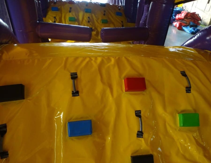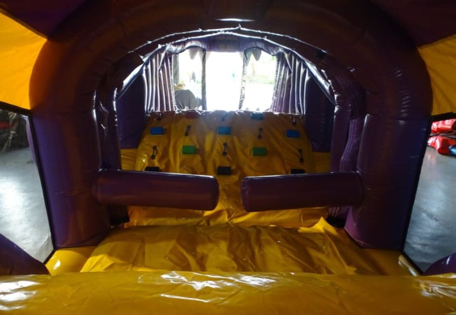 This Purple Dragon Obstacle Course is very popular at Children's birthday parties - Weddings, Family Fun Days, and School events. With reinforced seams, it includes a Slide, Tunnels, Rock Climbing Wall, Bish Bash & Bouncy areas. This Obstacle Course is very easily supervised as it has safety netting at each side. The Slide is smaller which suits younger children.