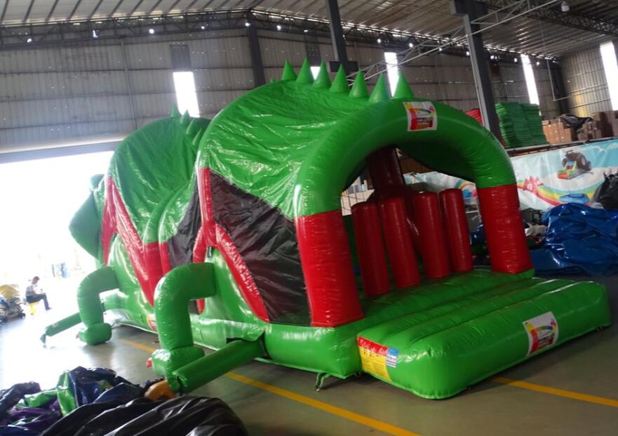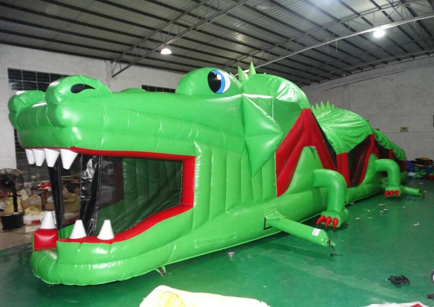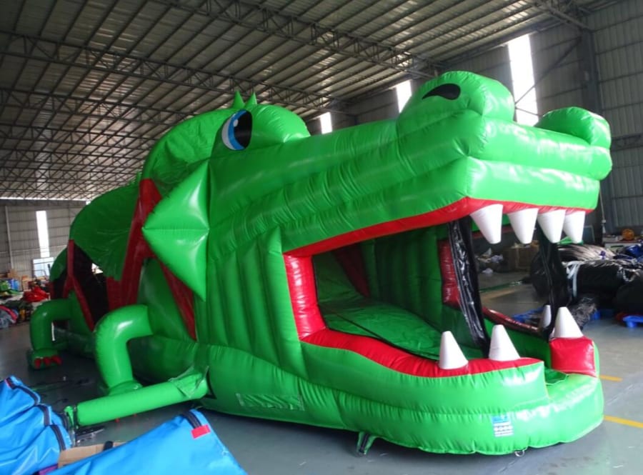 This Green & Red Crocodile Obstacle Course is very popular at Children's birthday parties - Weddings, Family Fun Days, and School events. With reinforced seams, it includes a Slide, Tunnels, Rock Climbing Wall, Bish Bash & Bouncy areas. This Obstacle Course is very easily supervised as it has safety netting at each side.