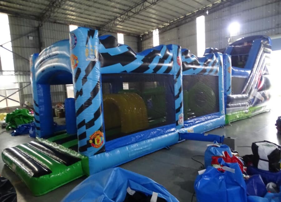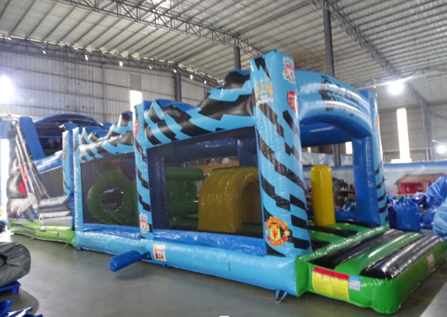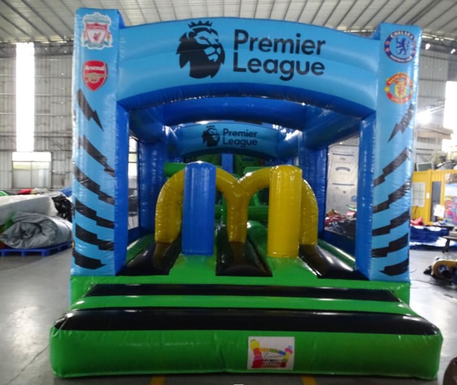 Get ready for an action-packed adventure with our Premier League Themed 50ft obstacle course! Perfect for both adults and kids, this exciting inflatable attraction brings the thrill of the Premier League right to your backyard.