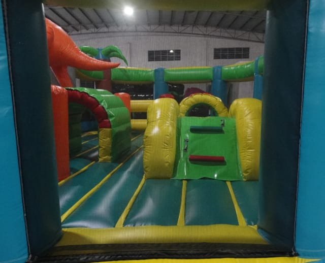 This Jurassic Park Play Centre is very popular at Children's birthday parties - Weddings, Family Fun Days and School events. With reinforced seams, it includes mini Slides, Tunnels and Pillars to go through. It has clear netting all around for easy supervision.