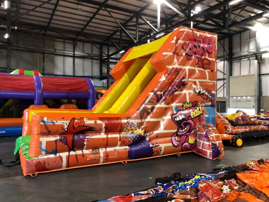This Graffiti Slide is very popular at Children's birthday parties, Weddings, Family Fun Days, and School events. The Graffiti Slide is a safe item for even younger children with its long landing areas and high sides. A must have for birthday parties and an excellent choice for family events.